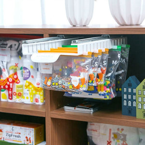 Product features: ★ IT'S LIKE GETTING A BIGGER REFRIGERATOR: Stop searching for leftovers and snacks in your unorganized refrigerator. Use space that normally goes to waste. ★ INSTALLS IN 2 MINUTES NO TOOLS NEEDED: Just attach to the bottom of your refrigerator shelf. Peel, stick, and slide. It's that simple. Zip n Store is also simple to unmount. ★ HAVE SNACKS AND LUNCHES WAITING FOR THE KIDS: Easy to see and easy to access. Kids will have a clear-view of the snacks and lunches you have waiting for them. ★ HOLDS UP TO 20 POUNDS: 14 slots for holding assorted quart size storage bags. Strong and secure. Sleek and functional design looks amazing. ★ PERFECT FOR CABINETS AND PANTRIES: it is perfect for organizing and storing food in cabinets, craft items for kids, and nuts bolts and screws in the garage. The possibilities are endless. Package include: 1 * holder + 10 * bags
