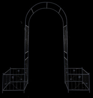 Metal Garden Arch with two plant stands 79.5\' Wide x 86.6\' High Climbing Plants Support Rose Arch Outdoor Black